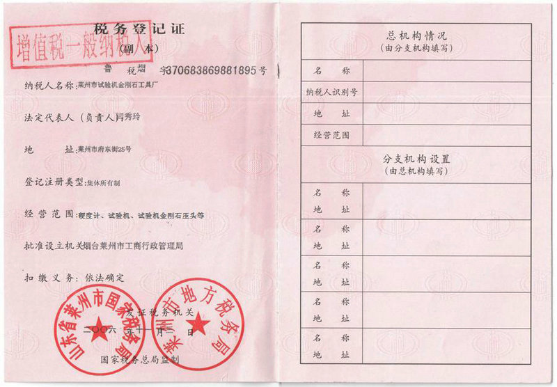 • 稅務登記證